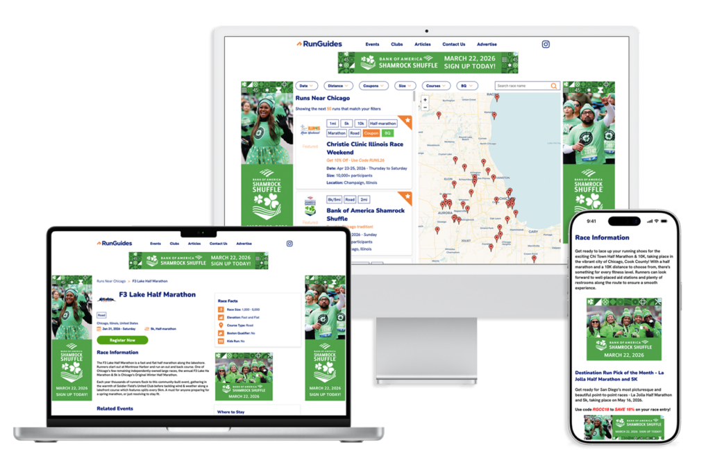 A site takeover gives you 100% of the available banner space on RunGuides. No competition with other banners! Perfect if your goal is to get in front of as many runners as possible.
